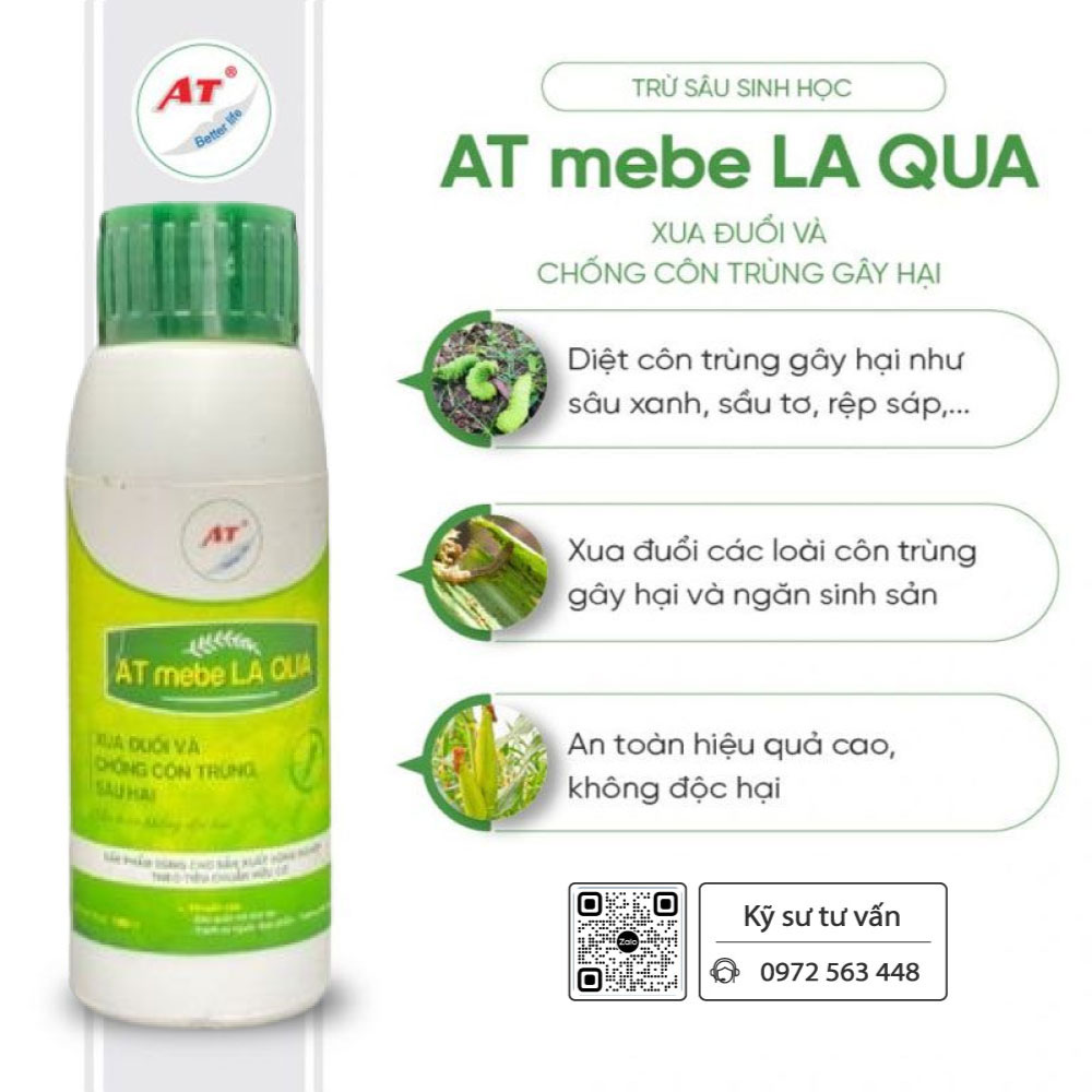 AT Mebe La Qua là một sản phẩm nằm trong danh mục trừ sâu sinh học của Công Ty TNHH Công Nghệ Sạch Nông Nghiệp. Phun trị bằng thuốc sinh học là một cách trị bọ trĩ mà bà con thường áp dụng cho cây trồng. Sản phẩm có thành phần có tác dụng phòng trừ côn trùng, an toàn cho người sử dụng và không gây hại cho môi trường.